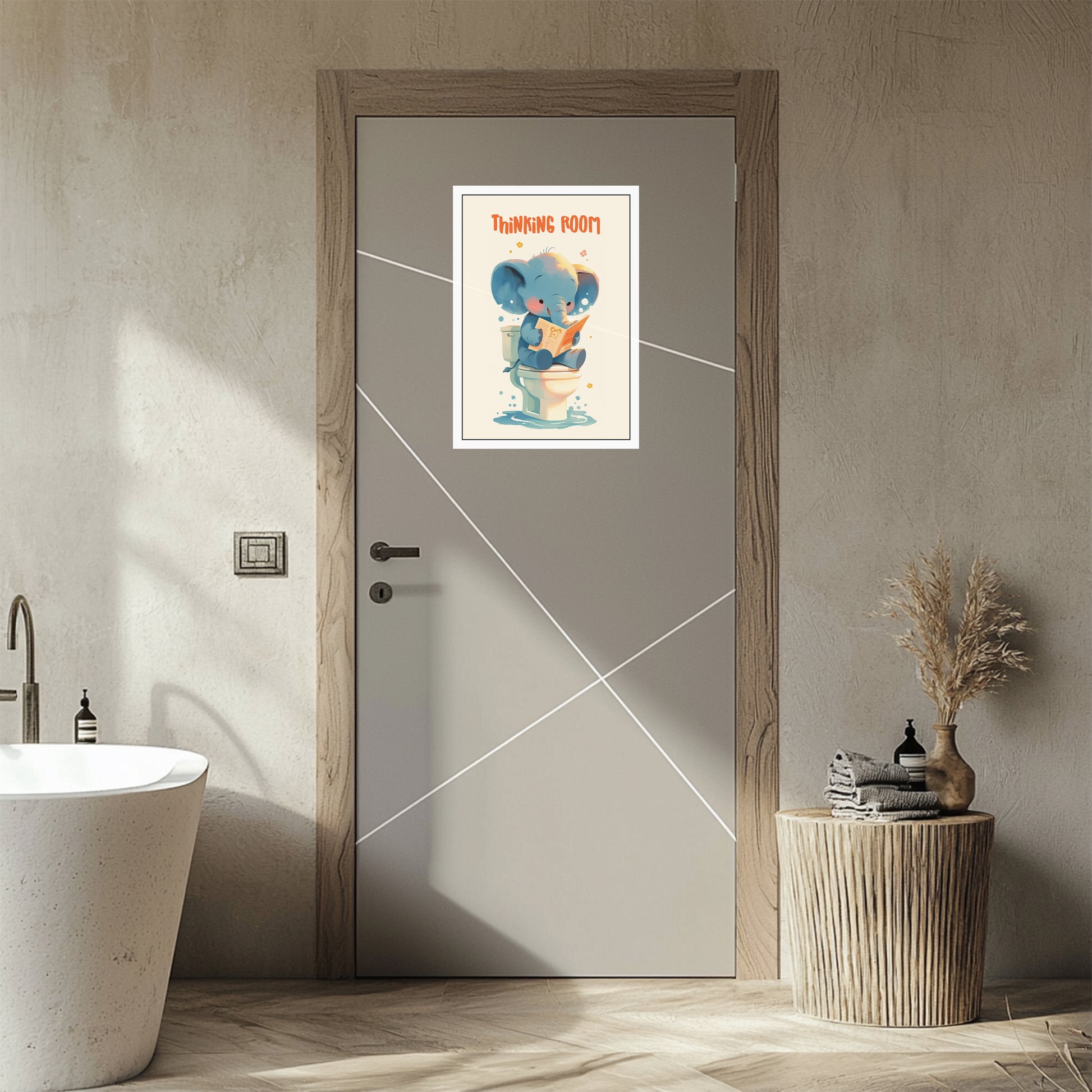 Thinking Room Bathroom Door Sticker, Elephant and Panda Design, Water Proof Sticker, Bathroom Decor